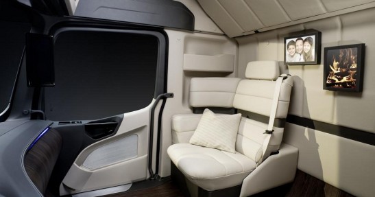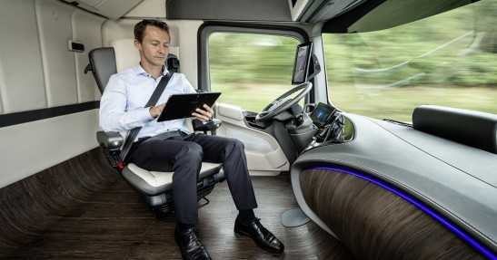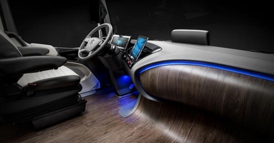 Kabina Future Trucks 2025 ma niemal purystyczny design. Podczas jazdy w trybie autonomicznym kierowca może obrócić swój fotel o 45 stopni w prawo i przyjąć zrelaksowaną pozycję. Do komunikacji ze światem służy mu przenośny tablet, służący do przeglądania dokumentów, planowania dalszych etapów wyjazdu, akceptacji zamówień i ustalania szczegółów najbliższego postoju. Interfejs można dostosować do własnych potrzeb i w razie potrzeby wywołać wszystkie istotne informacje na temat podróży. Na dłuższych odcinkach pokonywanych autonomicznie tablet staje się dla kierowcy niemal tak ważny jak kierownica i pedały.
