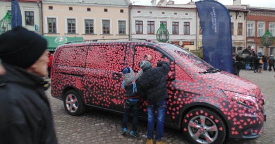 - W zeszłym roku przeprowadziliśmy podobną akcję, ale tylko w Warszawie. Zainteresowanie przerosło wtedy nasze oczekiwania, bo w akcji udział wzięło aż 15.000 osób i tyle właśnie serduszek znalazło się na naszym pojeździe. – komentuje Aleksander Rzepecki z działu prasowego Mercedes-Benz. – Okazało się, że to nie był jednak rekord! W tym roku dzięki pomocy naszych lokalnych dealerów udało się zebrać około 100.000 naklejek i taka też będzie wartość naszego wsparcia dla Orkiestry.Udział Mercedesa w XXIII Finale nie ograniczył się jedynie do oklejania samochodów. W studiu TVP podczas relacji telewizyjnej, firma przekazała na ręce Jurka Owsiaka nowego Vito. Posłuży on instruktorom programu „Ratujemy i Uczymy Ratować”, dojeżdżającymi często do najdalszych zakątków Polski w celu edukowania dzieci w zakresie podstawowej pomocy medycznej. Mercedes wspiera ten program już od sześciu lat.