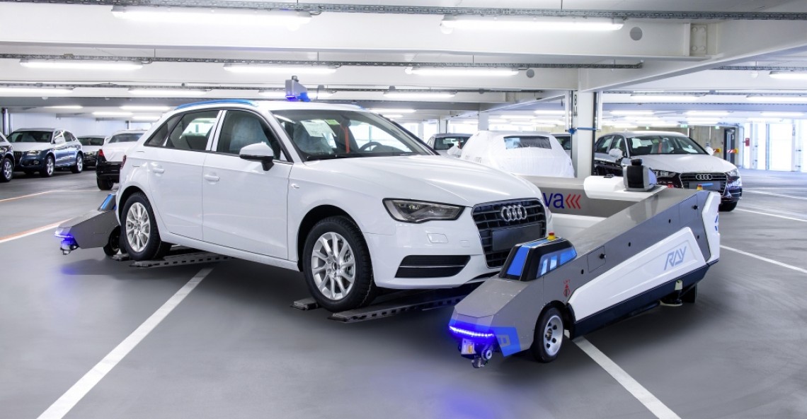 Pomysł z robotem o nazwie „Ray“ wymyśliła bawarska firma Serva Transport Systems i w 2013 roku otrzymała za niego nominację do niemieckiej nagrody Deutscher Gründerpreis. Ray samodzielnie, autonomicznie się porusza i jest bardzo elastyczny w zastosowaniu. Składa się ze stelaża o długości sześciu metrów i szerokości trzech metrów, który za pomocą czujników ocenia pozycję i wymiary samochodu, po czym dostosowuje się do nich. Następnie robot ostrożnie łapie koła i podnosi samochód na wysokość do dziesięciu centymetrów. Specjalne oprogramowanie sterujące przydziela autu miejsce, na które Ray go odstawia. W ten sposób można szybko transportować samochody o długości do 5,3 m i tymczasowo je magazynować, co przyczynia się do oszczędności miejsca. Gdy na poziomie sortowniczym znajdzie się wystarczająca liczba pojazdów przeznaczonych do wysyłki do tego samego miejsca, robot przygotuje je do załadunku.